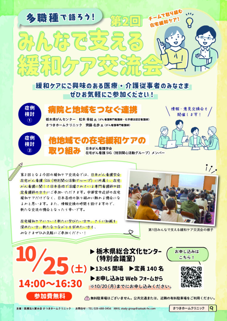 【イベント告知】令和7年10月25日開催「 多職種で語ろう! 第2回みんなで支える緩和ケア交流会」開催のお知らせ